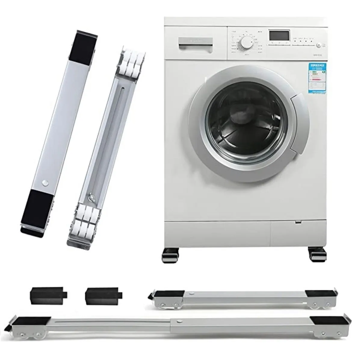 -Soporte para lavadora tiene 4 ruedas giratorias de bloqueo.