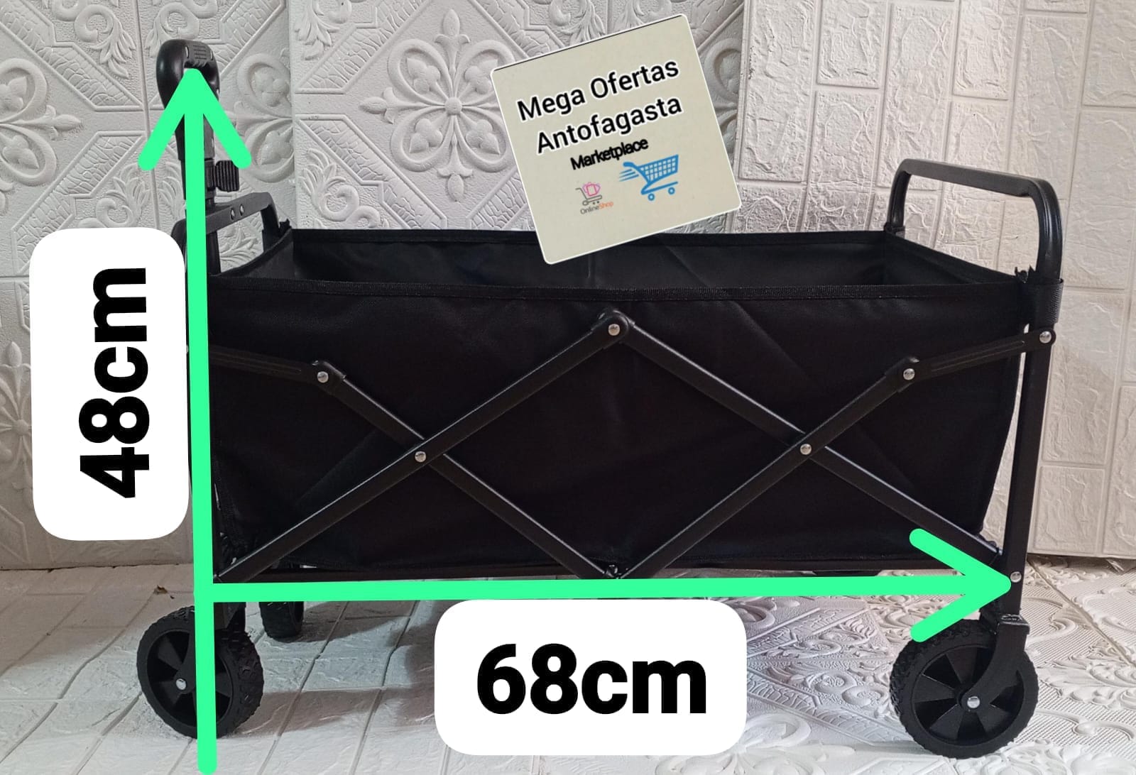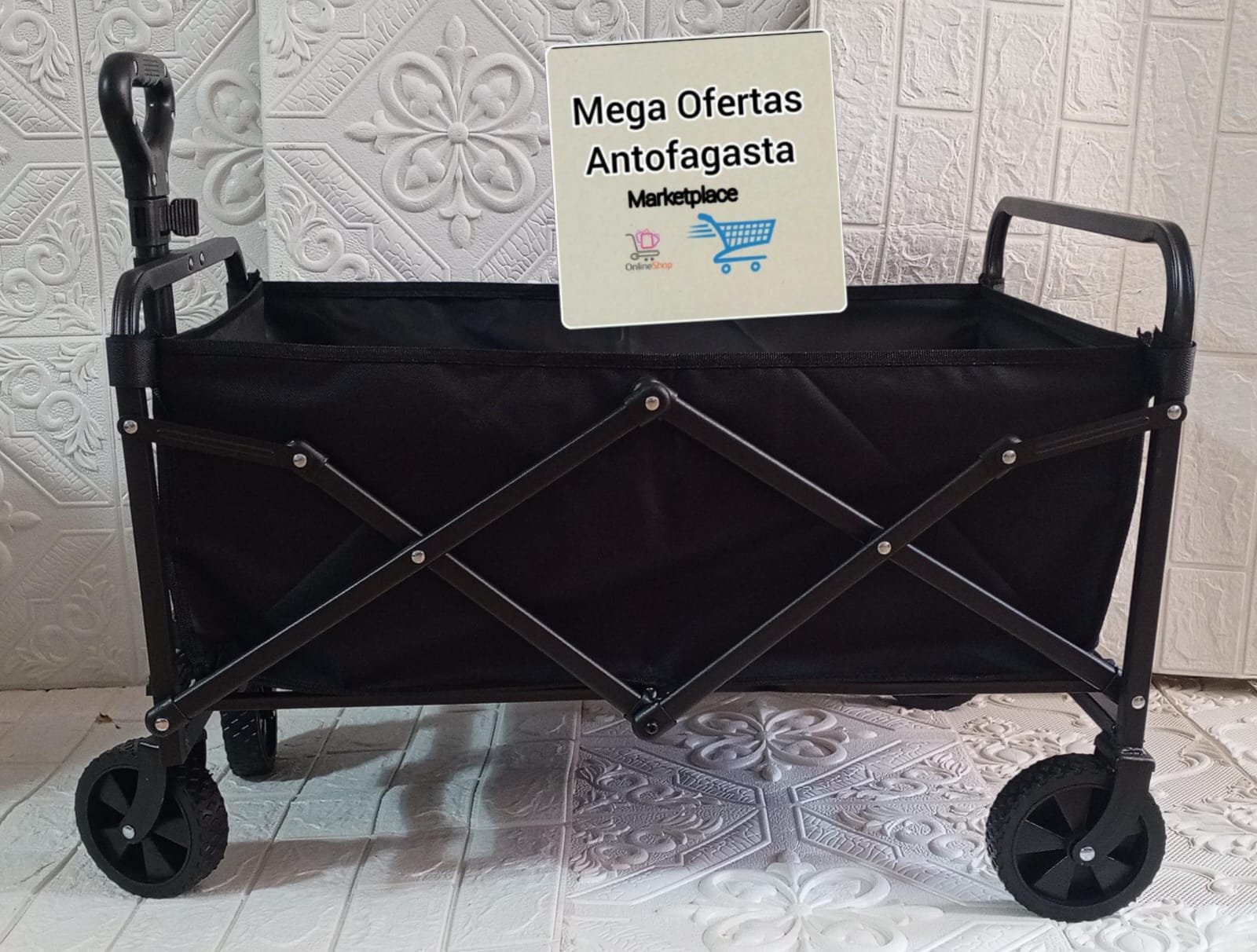 Espectacular carro de arrastre plegable especial para camping, jardín y otros , soporta hasta 50 kilos facilitando el traslado de objetos pesados, peso aproximado del carro 9kg, tela ultra resistente, cierra fácilmente jalando la tira del medio.