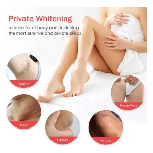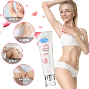 Esta crema está enriquecida con múltiples extractos naturales que ayudan a aclarar las axilas opacas, refinar, reparar los poros rugosos después de la depilación, hidratar, calmar, blanquear, suavizar la piel de las axilas, revelar un aspecto suave y brillante, eliminar el olor de las axilas y manteniéndolas frescas y calmadas. Tiene propiedades suaves y no causa irritación después de la aplicación. También se puede aplicar en el cuello, entre piernas, rodillas y codos.