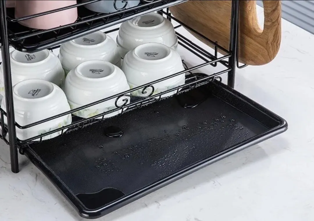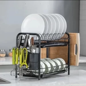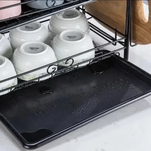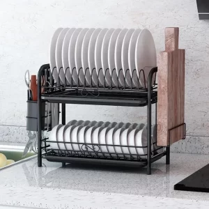 Secador de platos, hecho de hecho de fierro duradero con acabado negro de alta temperatura, ideal para platos, vasos y utensilios de cocina para escurrir el agua después de lavarse. El diseño de 2 pisos permite acomodar diferentes vasos y vajilla como platillos, tazas y mucho más, de forma muy cómoda.