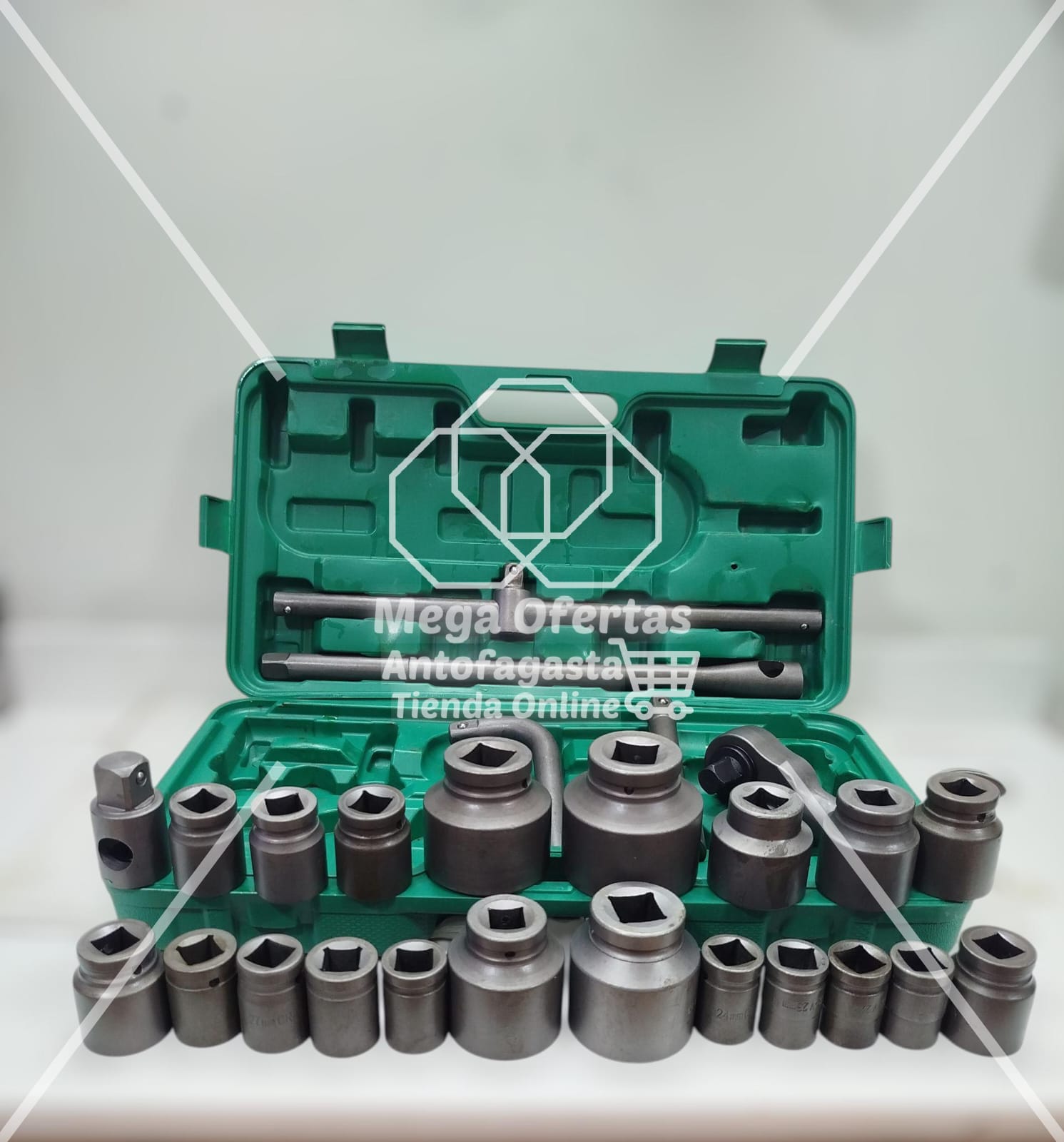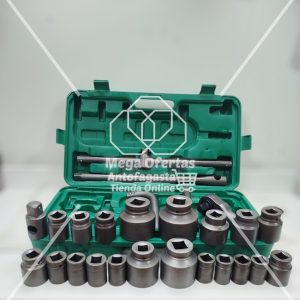JUEGO DE DADOS DE 26 PIEZAS FABRICADAS EN ACERO AL CROMO VANIDADO, IDEAL PARA TRABAJOS MECANICOS Y DE MANTENIMENTO EN GENERAL, CAJA DE METAL