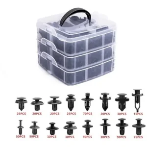 Gran surtido kit de retenedores de empuje con 16 tamaños más populares, ajuste para embellecedores de puerta, yugo de escudo del radiador, defensa, parachoques, falda lateral, rejilla, cubierta del motor y retenedores de protección contra salpicaduras, compatible con Ford, GM, Chrysler, Toyota, Honda y más. Todo empaquetado en un recipiente de plástico para una fácil organización y almacenamiento.