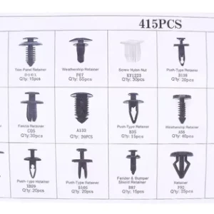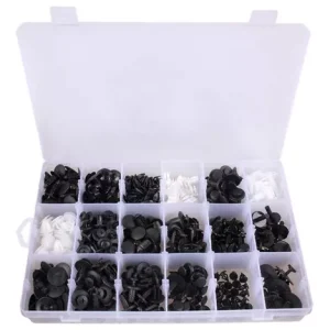 Con esta practica caja de broches sujetadores para auto, podrá ahorrarse múltiples viajes a la tienda para re-abastecer en caso de necesidad, posee 415 piezas en diferentes modelos para adaptarse a todas las situaciones. La caja esta dividida en compartimentos según el tamaño de los sujetadores por lo que no tendrá que preocuparse por confundir los tamaños.