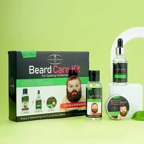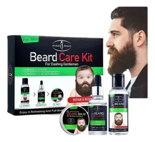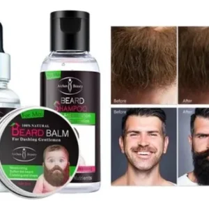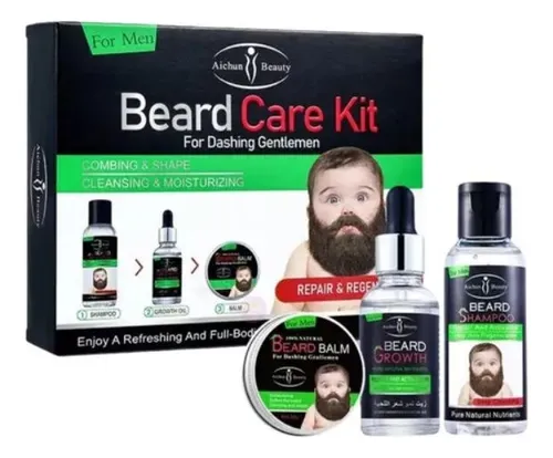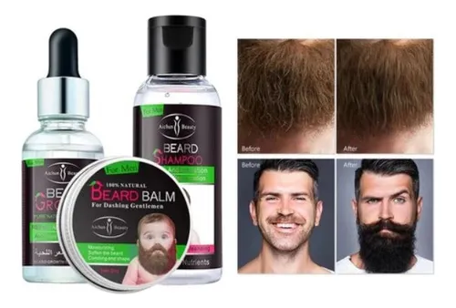 Kit de Cuidado de Barba Orgánico de 3 Piezas para Hombre, Aceite para el Crecimiento de la Barba