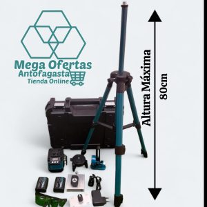 Este equipo cuenta con 16 líneas que garantizan una exactitud de 0.3 mm, ideal para trabajos que requieren un alto estándar de precisión. La batería recargable proporciona una autonomía prolongada, permitiendo su uso continuo sin interrupciones. Además, incluye un trípode de 1 metro, gafas de protección, y un soporte magnético ajustable, todo lo necesario para comenzar a trabajar de inmediato.