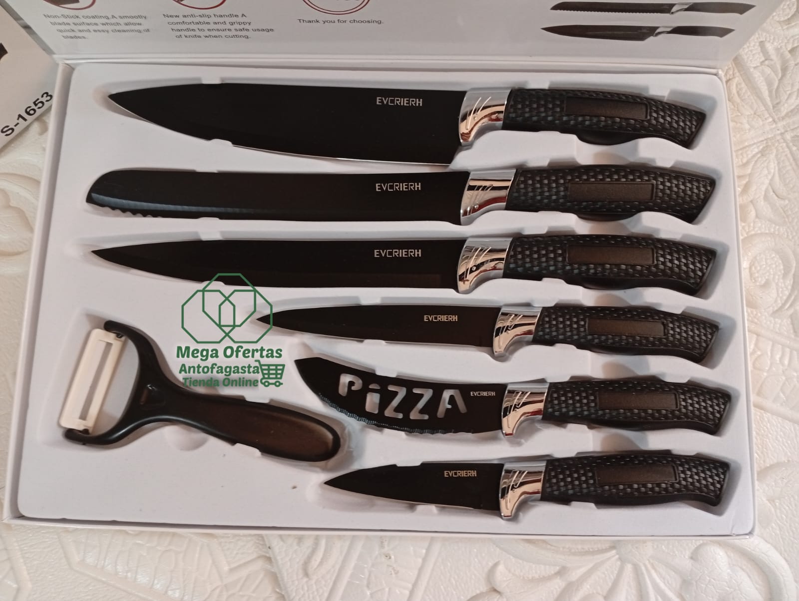 Set de Cuchillos de acero inoxidable bañados con capa antiadherente antibacterial.
